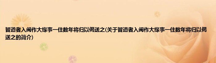 智道者入闽作大缘事一住数年将归以偈送之(关于智道者入闽作大缘事一住数年将归以偈送之的简介)