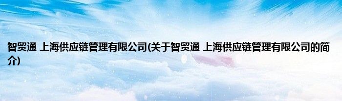 本文关于智贸通 上海供应链管理有限公司的简介就讲解完毕,希望对大家有所帮助。