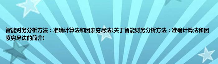 大家好,智能财务分析方法:准确计算法和因素穷尽法,关于智能财务分析方法:准确计算法和因素穷尽法的简介很多人还不知道,现在让我们一起来看看吧!