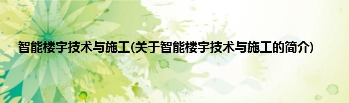 本文关于智能楼宇技术与施工的简介就讲解完毕,希望对大家有所帮助。