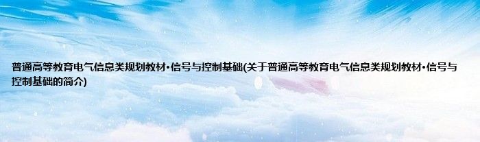 大家好,普通高等教育电气信息类规划教材·信号与控制基础,关于普通高等教育电气信息类规划教材·信号与控制基础的简介很多人还不知道,现在让我们一起来看看吧!