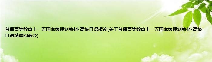 本文关于普通高等教育十一五国家级规划教材·高级日语精读的简介就讲解完毕,希望对大家有所帮助。