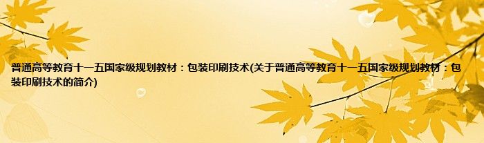 1、 《普通高等教育十一五国家级规划教材:包装印刷技术》是2011年5月1日中国轻工业出版社出版的图书。