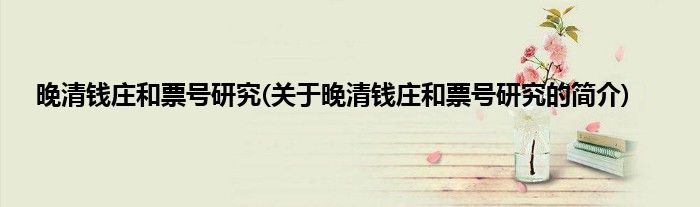 本文关于晚清钱庄和票号研究的简介就讲解完毕,希望对大家有所帮助。