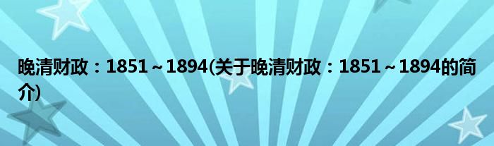 本文关于晚清财政:1851~1894的简介就讲解完毕,希望对大家有所帮助。