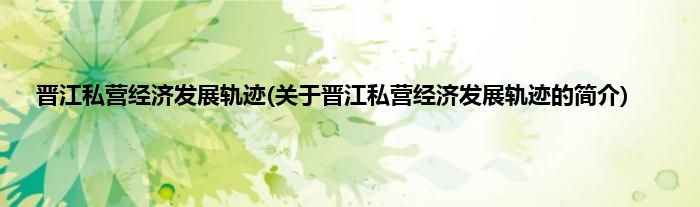 本文关于晋江私营经济发展轨迹的简介就讲解完毕,希望对大家有所帮助。