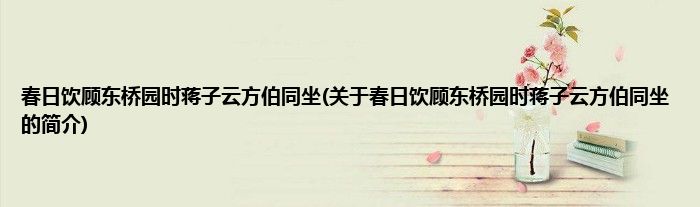 春日饮顾东桥园时蒋子云方伯同坐(关于春日饮顾东桥园时蒋子云方伯同坐的简介)