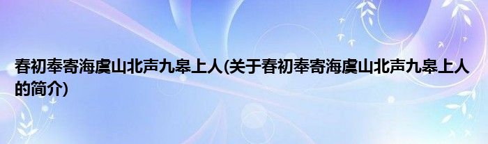 春初奉寄海虞山北声九皋上人(关于春初奉寄海虞山北声九皋上人的简介)