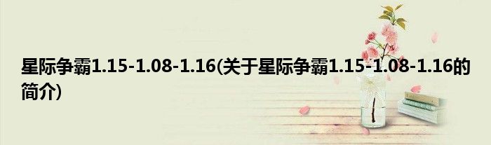 星际争霸1.15-1.08-1.16(关于星际争霸1.15-1.08-1.16的简介)