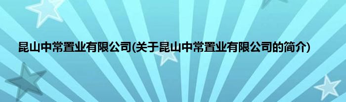 昆山中常置业有限公司(关于昆山中常置业有限公司的简介)