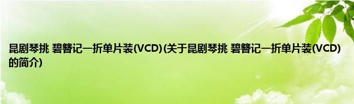 昆剧琴挑碧簪记一折单片装(VCD)(关于昆剧琴挑碧簪记一折单片装(VCD)的简介...
