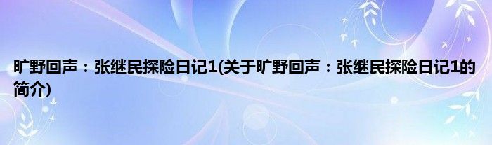 本文关于旷野回声:张继民探险日记1的简介就讲解完毕,希望对大家有所帮助。