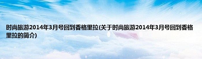 大家好,时尚旅游2014年3月号回到香格里拉,关于时尚旅游2014年3月号回到香格里拉的简介很多人还不知道,现在让我们一起来看看吧!