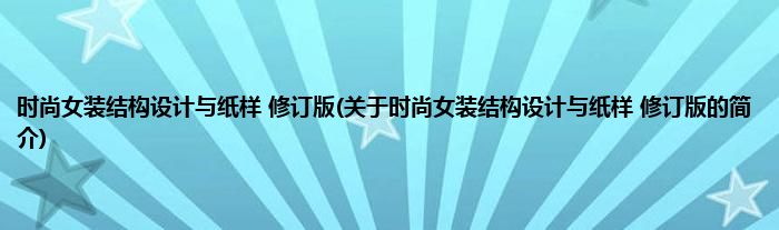 本文关于时尚女装结构设计与纸样 修订版的简介就讲解完毕,希望对大家有所帮助。