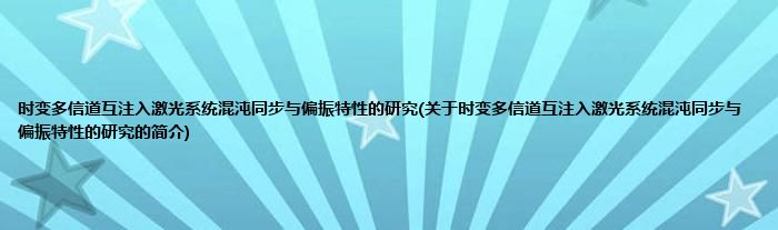 时变多信道互注入激光系统混沌同步与偏振特性的研究(关于时变多信道互注入激光系统混沌同步与偏振特性的研究的简介)