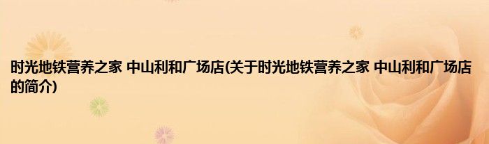 时光地铁营养之家中山利和广场店(关于时光地铁营养之家中山利和广场店的简介)
