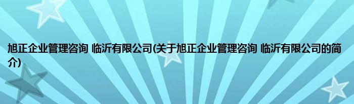 本文关于旭正企业管理咨询 临沂有限公司的简介就讲解完毕,希望对大家有所帮助。