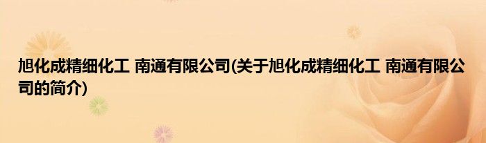 旭化成精细化工南通有限公司(关于旭化成精细化工南通有限公司的简介)