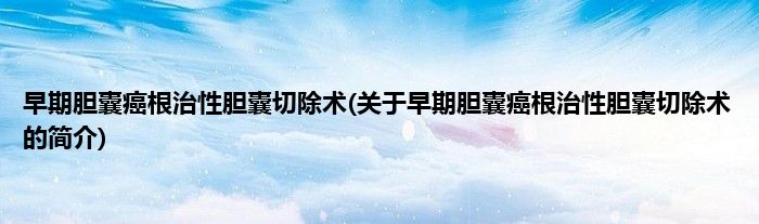 大家好,早期胆囊癌根治性胆囊切除术,关于早期胆囊癌根治性胆囊切除术的简介很多人还不知道,现在让我们一起来看看吧!