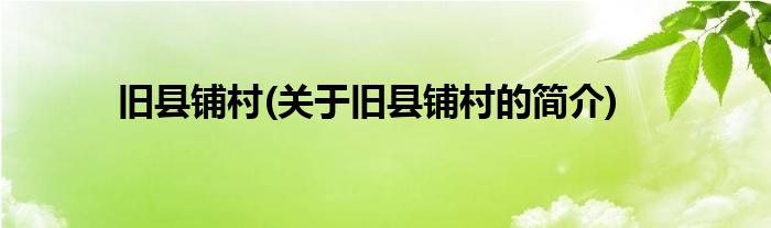 本文关于旧县铺村的简介就讲解完毕,希望对大家有所帮助。