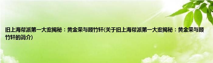 旧上海帮派第一大案揭秘:黄金荣与顾竹轩(关于旧上海帮派第一大案揭秘:黄金荣与顾竹...