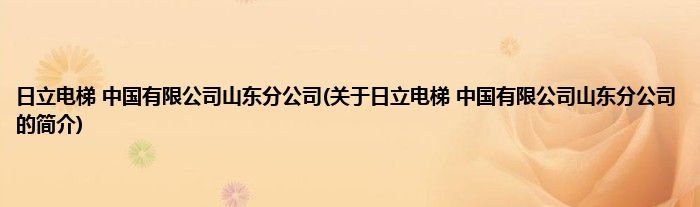 日立电梯 中国有限公司山东分公司(关于日立电梯 中国有限公司山东分公司的简介)