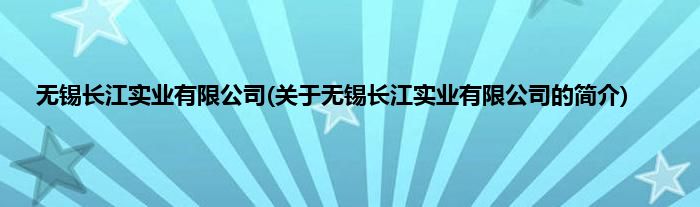 本文关于无锡长江实业有限公司的简介就讲解完毕,希望对大家有所帮助。