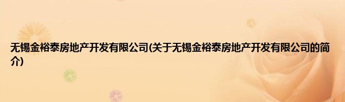 无锡金裕泰房地产开发有限公司(关于无锡金裕泰房地产开发有限公司的简介)