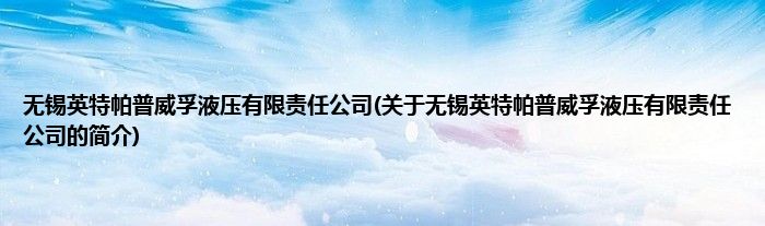 无锡英特帕普威孚液压有限责任公司(关于无锡英特帕普威孚液压有限责任公司的简介)