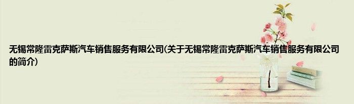 无锡常隆雷克萨斯汽车销售服务有限公司(关于无锡常隆雷克萨斯汽车销售服务有限公司的简介)