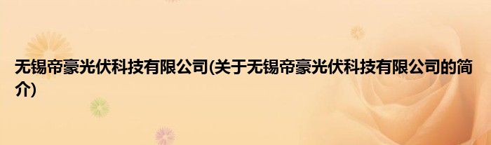 本文关于无锡帝豪光伏科技有限公司的简介就讲解完毕,希望对大家有所帮助。