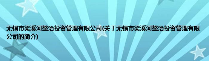 本文关于无锡市梁溪河整治投资管理有限公司的简介就讲解完毕,希望对大家有所帮助。