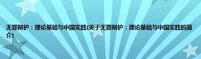 大家好,无罪辩护:理论基础与中国实践,关于无罪辩护:理论基础与中国实践的简介很多人还不知道,现在让我们一起来看看吧!