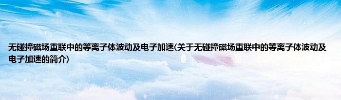 本文关于无碰撞磁场重联中的等离子体波动及电子加速的简介就讲解完毕,希望对大家有所帮助。