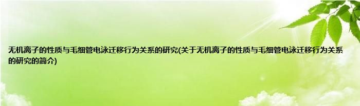 无机离子的性质与毛细管电泳迁移行为关系的研究(关于无机离子的性质与毛细管电泳迁移行为关系的研究的简介)