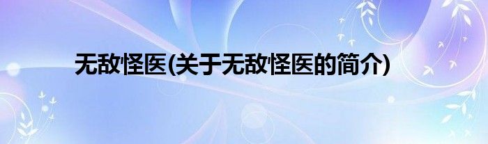 本文关于无敌怪医的简介就讲解完毕,希望对大家有所帮助。