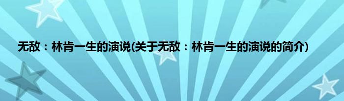 本文关于无敌:林肯一生的演说的简介就讲解完毕,希望对大家有所帮助。