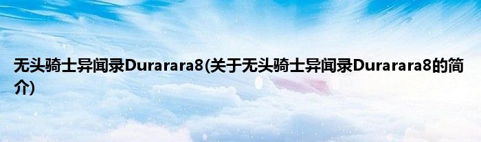 本文关于无头骑士异闻录Durarara8的简介就讲解完毕,希望对大家有所帮助。