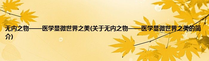 本文关于无内之物——医学显微世界之美的简介就讲解完毕,希望对大家有所帮助。