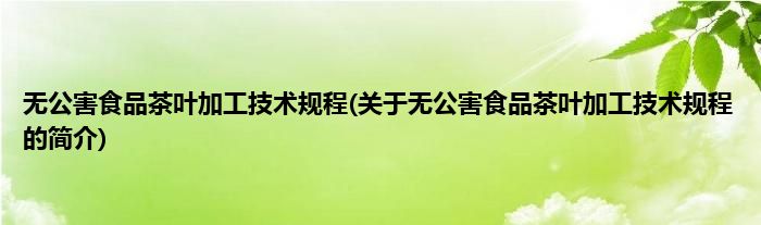 本文关于无公害食品茶叶加工技术规程的简介就讲解完毕,希望对大家有所帮助。