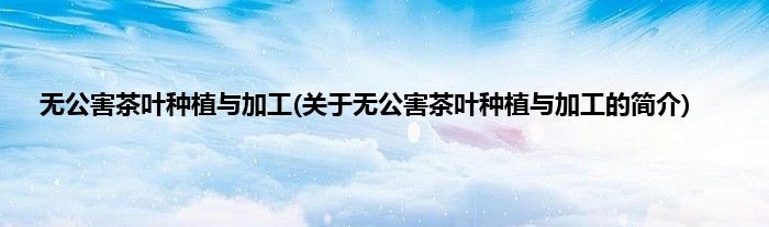 大家好,无公害茶叶种植与加工,关于无公害茶叶种植与加工的简介很多人还不知道,现在让我们一起来看看吧!