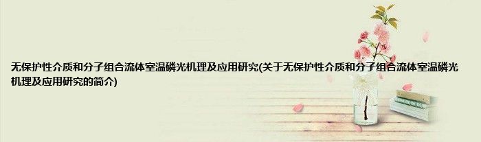 本文关于无保护性介质和分子组合流体室温磷光机理及应用研究的简介就讲解完毕,希望对大家有所帮助。