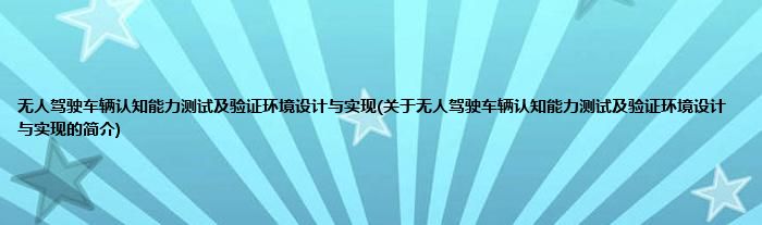 无人驾驶车辆认知能力测试及验证环境设计与实现(关于无人驾驶车辆认知能力测试及验证环境设计与实现的简介)
