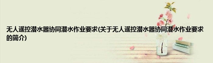 本文关于无人遥控潜水器协同潜水作业要求的简介就讲解完毕,希望对大家有所帮助。