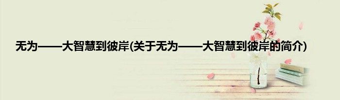 本文关于无为——大智慧到彼岸的简介就讲解完毕,希望对大家有所帮助。