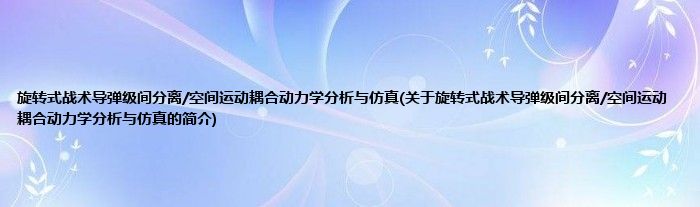 大家好,旋转式战术导弹级间分离/空间运动耦合动力学分析与仿真,关于旋转式战术导弹级间分离/空间运动耦合动力学分析与仿真的简介很多人还不知道,现在让我们一起来看看吧!