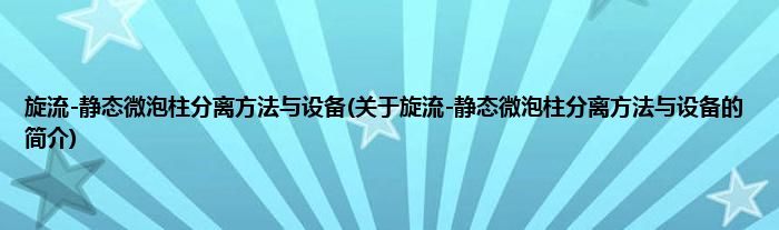 本文关于旋流-静态微泡柱分离方法与设备的简介就讲解完毕,希望对大家有所帮助。