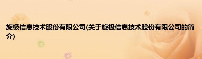 本文关于旋极信息技术股份有限公司的简介就讲解完毕,希望对大家有所帮助。