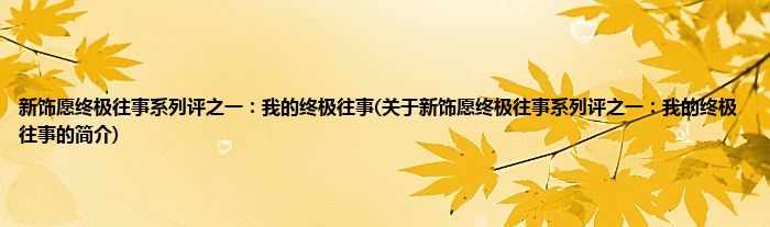 本文关于新饰愿终极往事系列评之一:我的终极往事的简介就讲解完毕,希望对大家有所帮助。