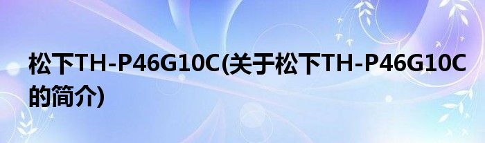 本文关于松下TH-P46G10C的简介就讲解完毕,希望对大家有所帮助。